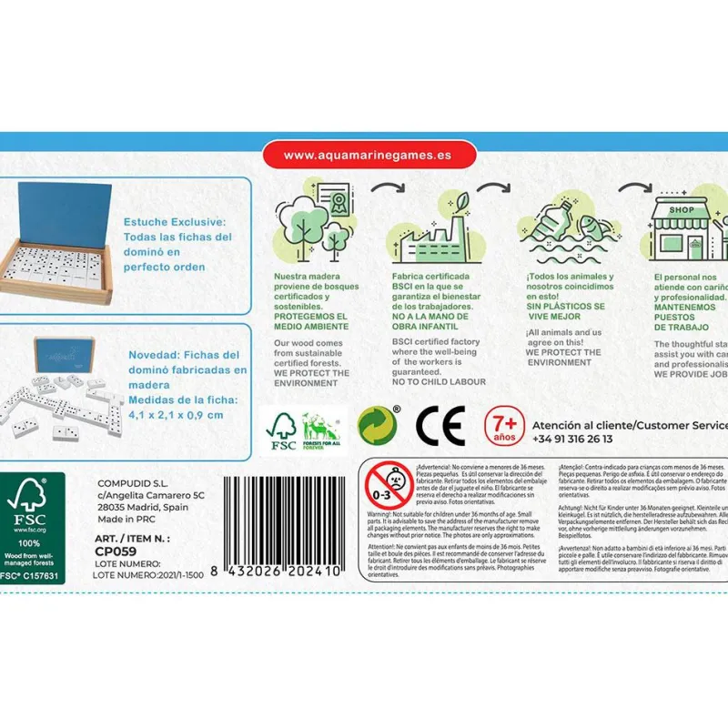 Si te gusta disfrutar de los juegos de mesa con tu familia, o con tus amigos y amigas… ¡el dominó es tu juego! Esta nueva versión está fabricada en su totalidad con madera FSC, e incluye un práctico estuche, perfecto para guardar tus piezas y evitar que se pierdan.