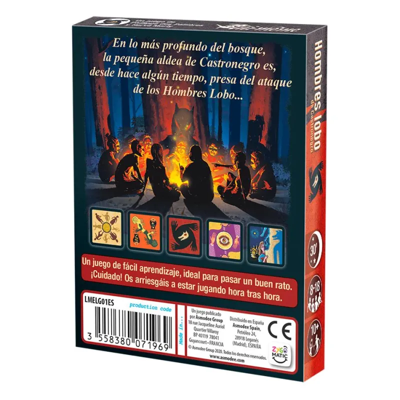 Este genial juego es ideal si lo que quieres es pasar un gran rato con amigos o familia. Los jugadores deberán deducir a través de la observación, qué papel interpreta el resto para poder jugar el suyo y vencer, ya sea sobreviviendo si es un vecino del pueblo, o dándose un gran festín si es hombre lobo. Fabricante/Representante: Asmodee Group 18 Rue Jacqueline Auriol 78280-Guyancourt France Mail: [email protected]