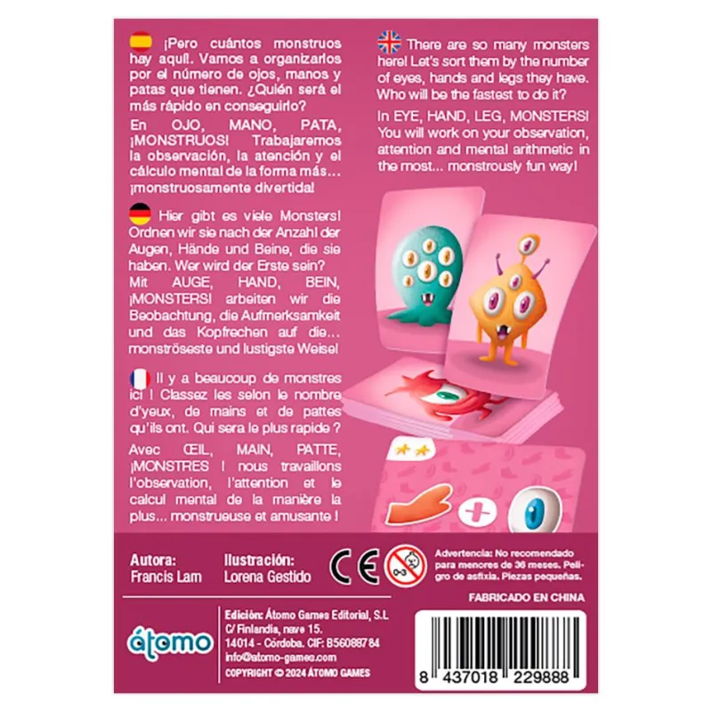 Descubre un divertido juego que pondrá a prueba tu capacidad de observación, ¡y de cálculo! Observa tus monstruos y presta atención a la carta desafío, porque quien primero encuentre la respuesta será quien gane, ¿cuántos ojos, manos o patas tienen?