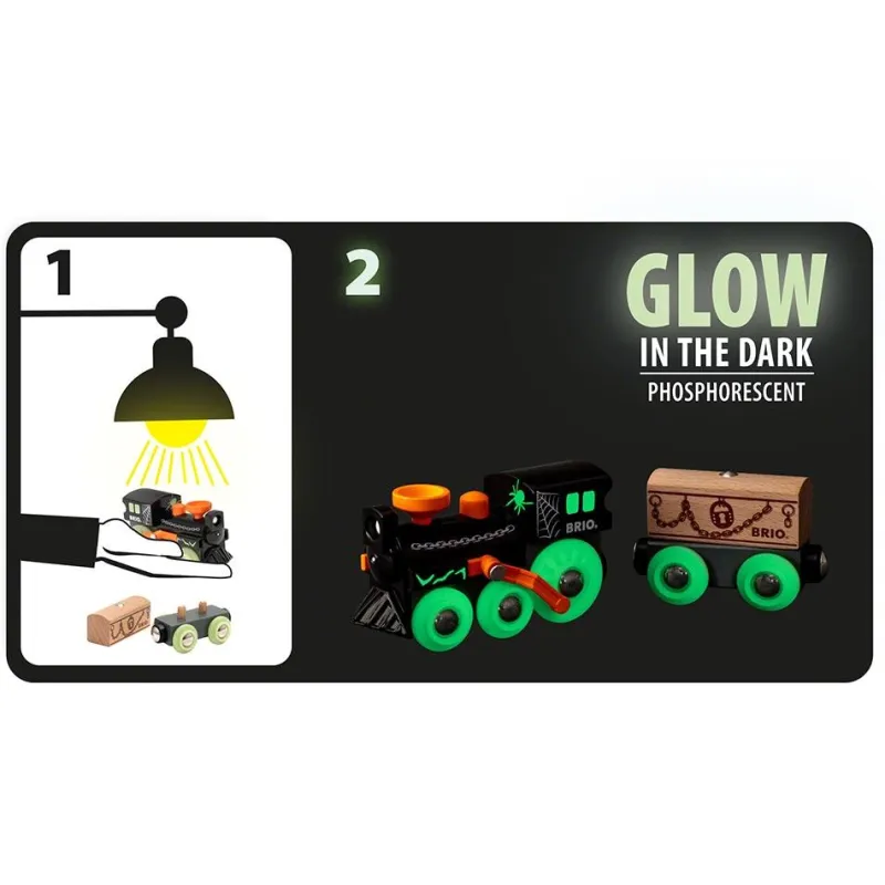 Combina este fantástico tren con tus otros circuitos Brio e imagina un sinfín de aventuras horripilantemente divertidas, ¡criaturas al tren! Sus ruedas y otros detalles brillan en la oscuridad, ¡es perfecto para realizar los viajes nocturnos más intrigantes y divertidos!