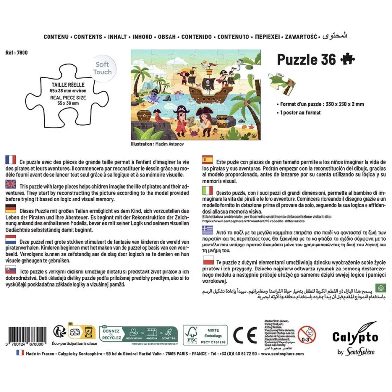 Pon a prueba tu habilidad mientras formas este fantástico puzle de 36 piezas, ¡y descubre cómo es la vida pirata!
