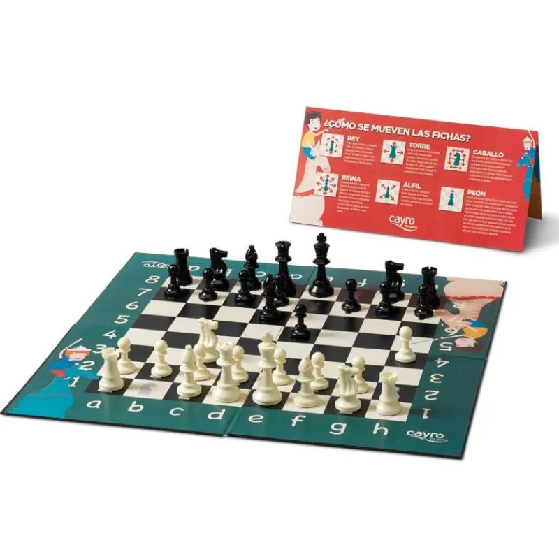 Tiene en su tablero las fichas dibujadas en la posición de inicio de partida para aprender a colocarlas y además dispone de un manual gráfico de cómo se mueve cada figura. ¡Seguro que aprendes rápidamente las reglas!