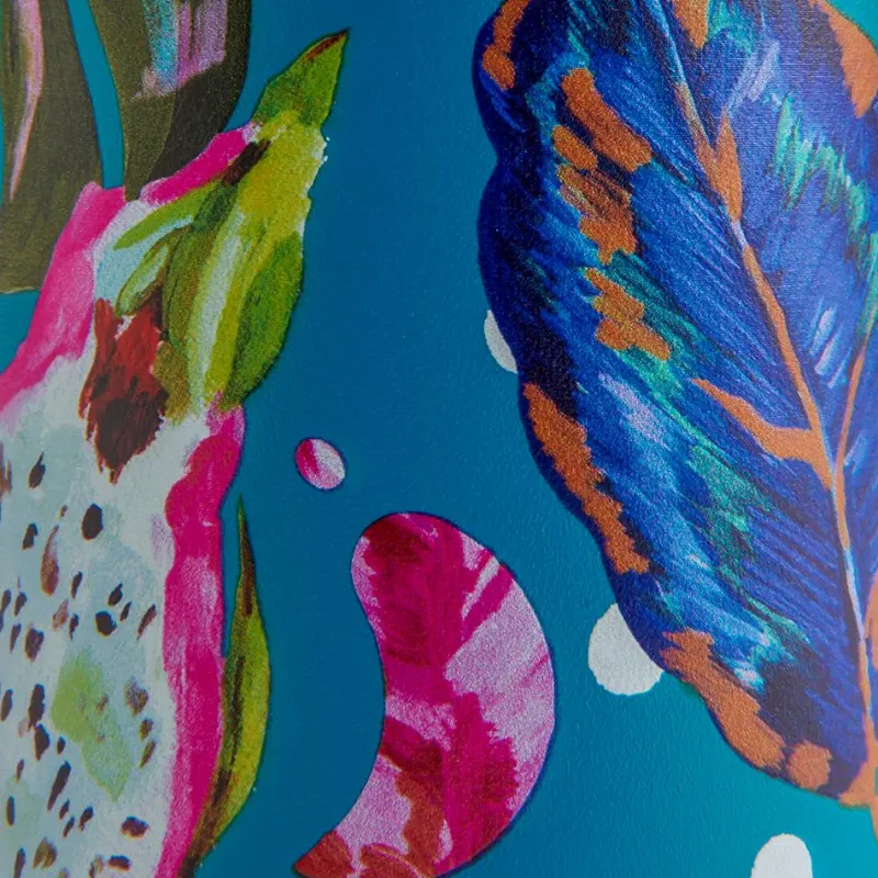 Sustituye tus botellas de plástico de un solo uso por esta alucinante botella reutilizable en tamaño grande con llamativas ilustraciones de frutas sobre fondo azul, que te permitirá disfrutar en cualquier parte de tus bebidas frías o calientes, sea cual sea la temperatura ambiente. ¡Perfecta para tu día a día!