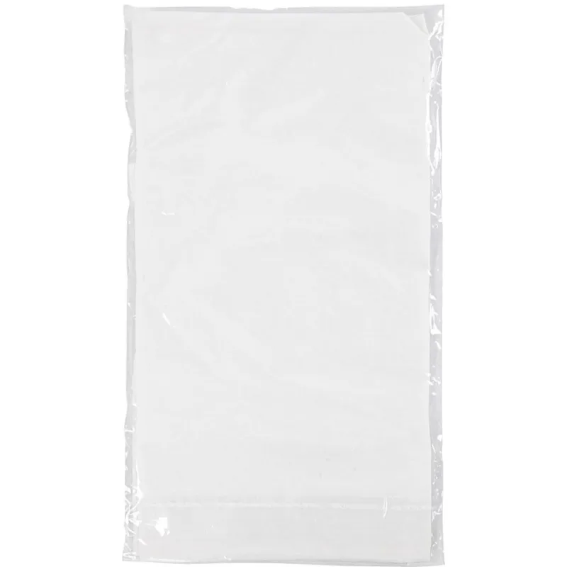 La bolsa y las asas son de color blanco natural. Tiene unas medidas de 38 x 42 centímetros y pesa 110 gramos. Es perfecta para personalizar a tu gusto con diferentes técnicas de manualidades: pintándola, cosiéndole accesorios, añadiéndole colgantes o lentejuelas… ¡Las posibilidades son infinitas!