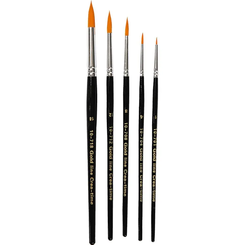 Incluye 5 pinceles, de las medidas: 1, 4, 8, 12 y 18.