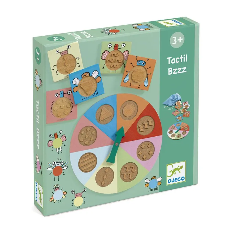La clave en este juego es la observación: presta atención al símbolo que señala la ruleta, e intenta identificarlo entre las fichas y las tarjetas con el sentido del tacto y con la vista, ¡estos divertidos insectos te ayudarán!