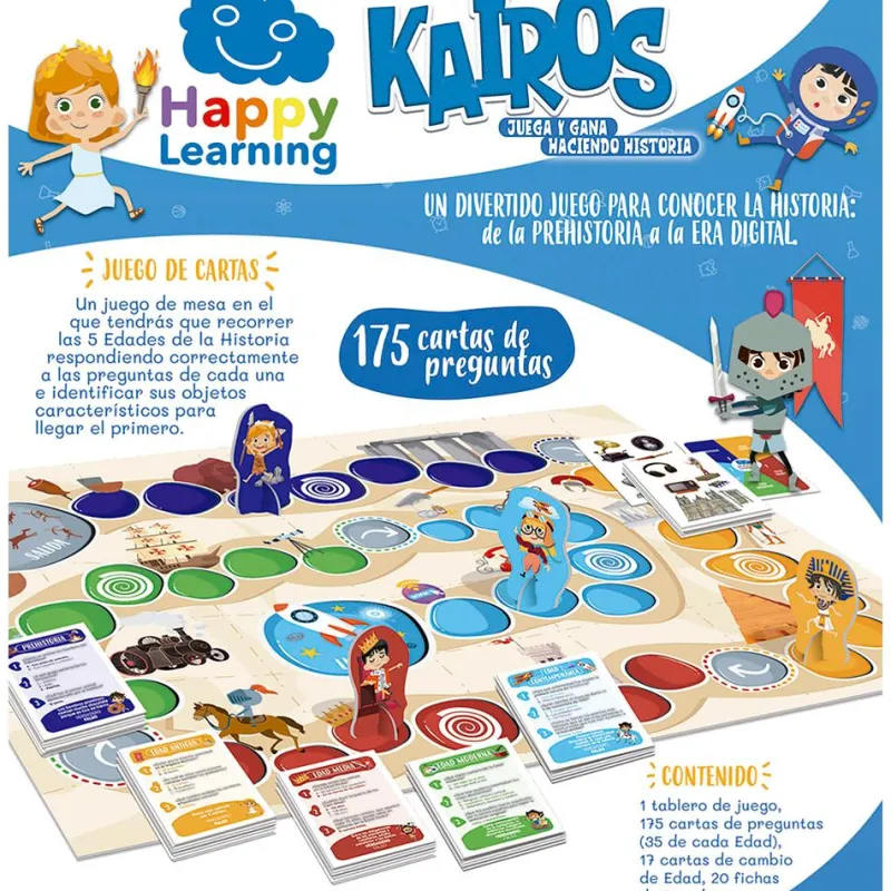 Niños y niñas aprenderán de una forma muy divertida sobre un sinfín de hechos históricos sucedidos en las distintas etapas, mientras se divierten respondiendo a las preguntas y haciendo avanzar a su personaje a lo largo de la historia y el tablero. Es ideal para introducir a los pequeños y pequeñas en el fascinante mundo de la historia, que les ayudará a comprender el mundo actual, ¡compártelo con tus alumnos y alumnas y descúbreles lo divertido que es aprender jugando!