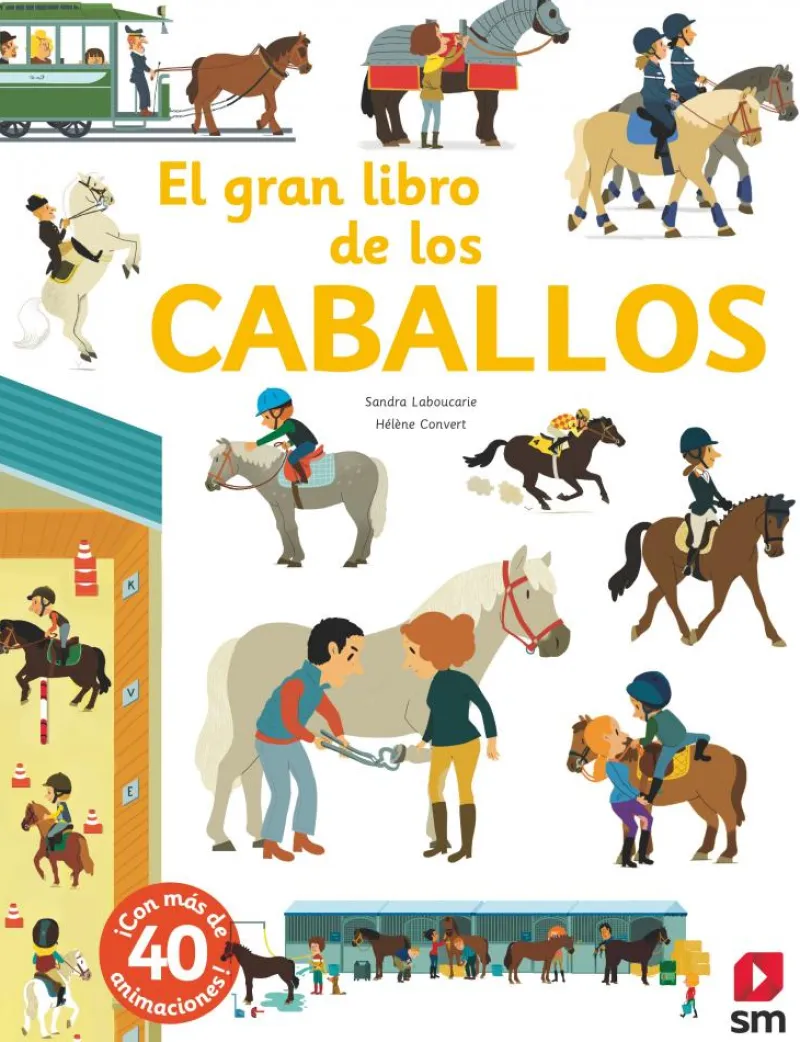 Para hacer este libro, la autora ha visitado centros ecuestres y una clínica para caballos; ha asistido a carreras de caballos y a concursos hípicos, ha preguntado a un herrador, a responsables de yeguadas, a propietarios de caballos, a jinetes, a veterinarios de caballos, y a muchos apasionados de estos bonitos animales. Las precisas ilustraciones de Hélène Convert desvelan el mundo del caballo en todos sus aspectos. En todas las páginas del libro hay solapas, ruedas y elementos móviles para que comprendas mejor el mundo de los caballos.