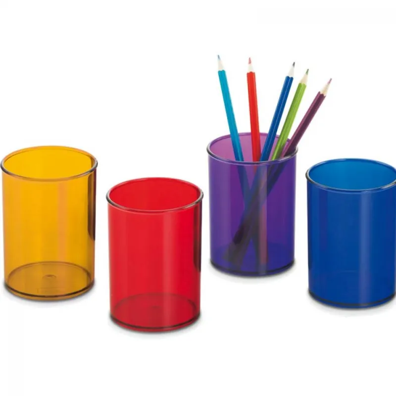Mantén todos tus útiles de escritura organizados y a mano con este práctico cubilete translúcido, ¡añade un toque de color a tu escritorio!