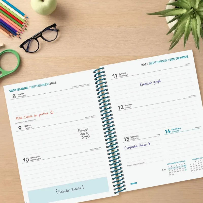 ¡Comienza el curso de la forma más divertida e inspiradora! Sorprende a todos con esta fantástica agenda tamaño cuarto, en formato semana vista y con un colorido diseño de rayas de colores. ¡Organízate como nunca!