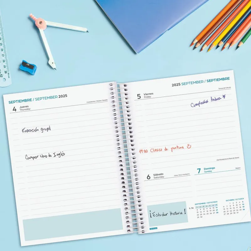 ¡Comienza el curso de la forma más divertida e inspiradora! Sorprende a todos con esta fantástica agenda tamaño cuarto, en formato día por página y con un vistoso diseño degradado, ¡podrás tener bien organizadas todas tus tareas pendientes!