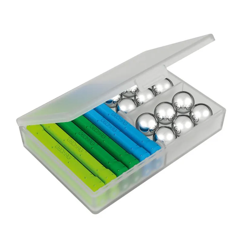 Déjate atrapar por este completo set de construcción formado por barras magnéticas, paneles y bases fabricados con plástico 100 % reciclado, y esferas metálicas. Construir con piezas magnéticas es fascinante: al acercarlas ligeramente se atraen y se unen por arte de magia. Diseña tu estructura y observa cómo funciona la fuerza del magnetismo.