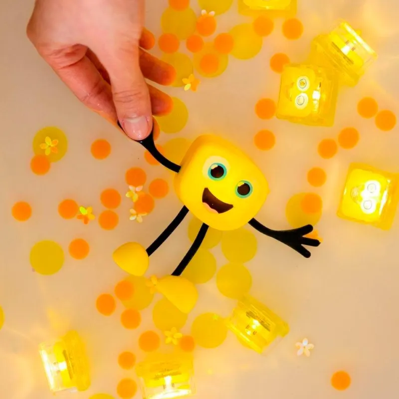 Los alegres cubos de Glo Pals son ideales para la hora del baño. Estos amigos tan simpáticos nacieron con el objetivo de ayudar a un niño autista con su miedo a la hora del baño. Se descubrió así que la luz que emiten es de gran ayuda para lidiar con la gran cantidad de estímulos sensoriales y que alegraban la hora del baño considerablemente. Desde entonces, los Glo Pals han evolucionado hasta convertirse en personajes con sus propias historias.