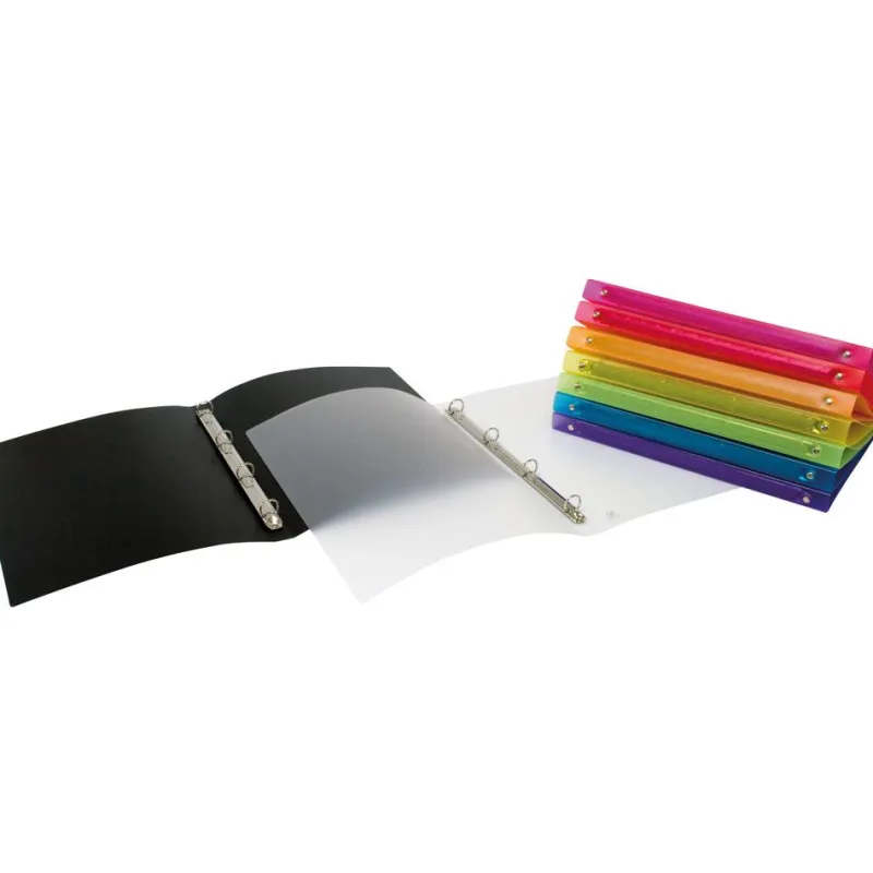 Este archivador es muy cómodo de manejar y transportar, pues dispone de cubiertas de polipropileno semirrígido y anillas de 25mm. Dimensiones: 32 x 26 x 38cm.
