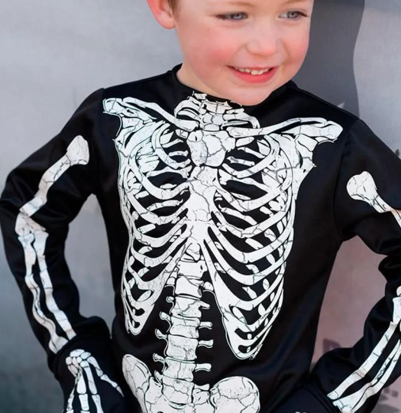 La próxima vez que te disfraces será espeluznantemente divertida, ¡con este genial disfraz de esqueleto que brilla en la oscuridad!
