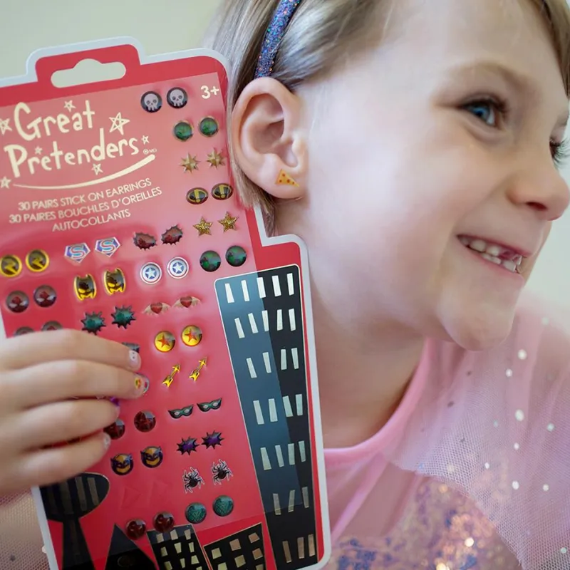 Este original set de pendientes adhesivos despertará la imaginación de niños y niñas, pues son ideales para completar su disfraz favorito, o para utilizarlos en cualquier momento y expresar su personalidad y gustos. Puede utilizarlos cualquiera, ya que no es necesario tener la oreja perforada, y son muy fáciles de poner y quitar, ¡no esperes más para hacerte con tu modelo favorito!