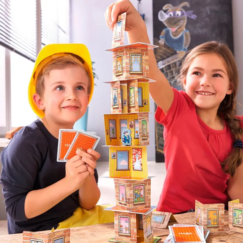 Con este diversísimo juego los pequeños y pequeñas de la casa se convertirán en perfectos arquitectos y arquitectas de los edificios más robustos de toda la ciudad de Rhino Hero. Desarrollarán habilidades de psicomotricidad fina gracias al trabajo de colocar las paredes y los tejados, convirtiéndose en auténticos superhéroes y superheroínas.