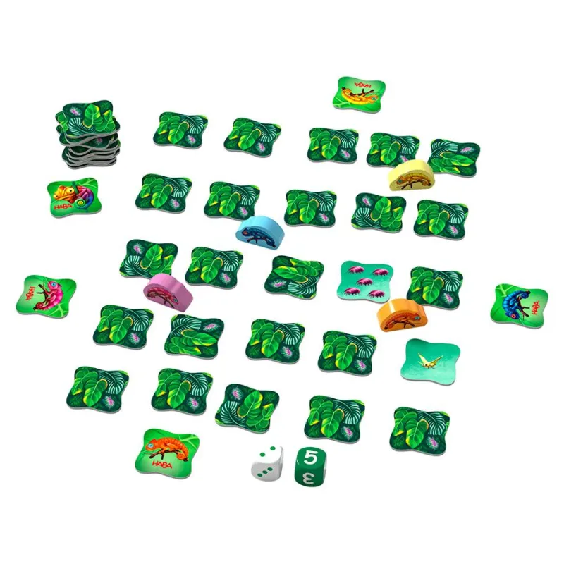 Este genial juego fascinará a los más pequeños con su increíble diseño ambientado en la selva y las cuidadas piezas llenas de color, mientras desarrollan su memoria a la vez que buscan los insectos escondidos entre las fichas. Deberán prestar atención y practicar el conteo para hacerse con la victoria.