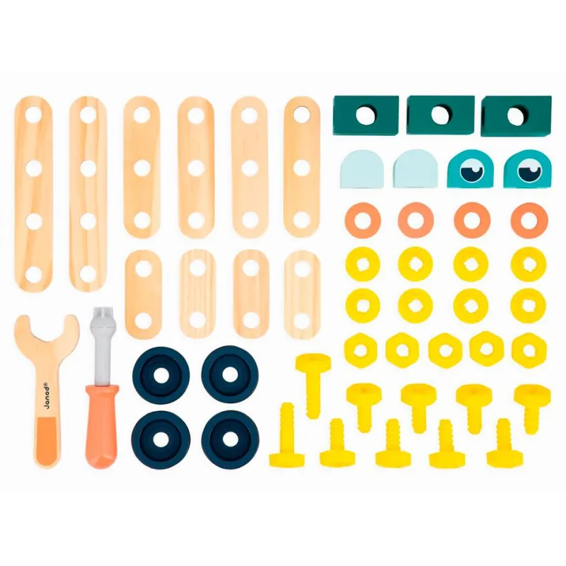 Construye tus primeros proyectos fácilmente con las herramientas que incluye este set repleto de tornillos, tuercas y tablillas, ¡para crear la composición que se te ocurra!