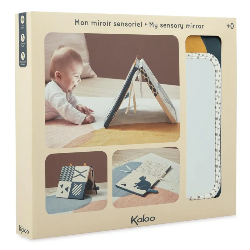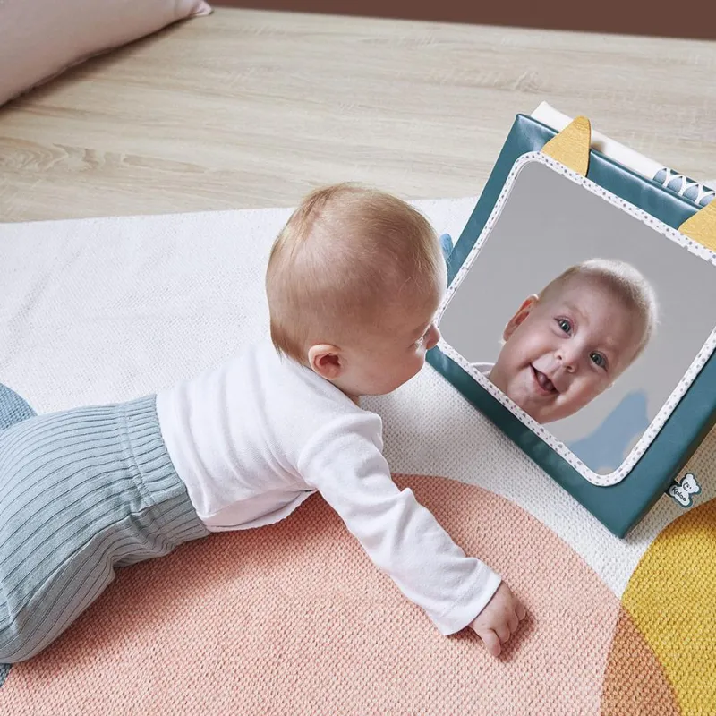 Disfruta de los primeros ratos de juego y aprendizaje de tu bebé con el mejor aliado. El espejo dispone de una base sólida que le ayudará a mantenerse de pie en el suelo, facilitando su manipulación. Está rodeado por cintas y piezas de tela suave perfectas para manipular.