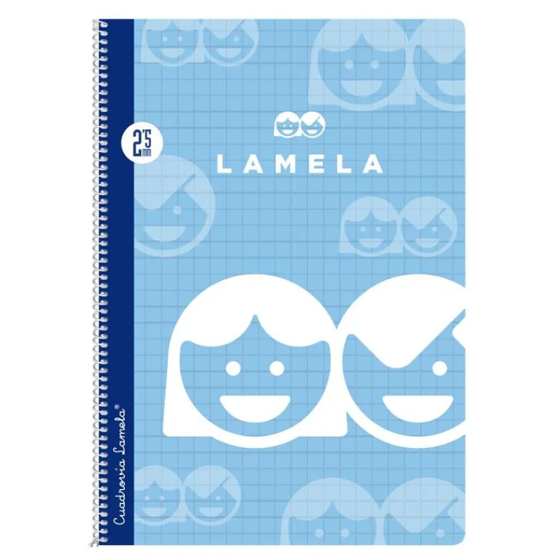 Cuaderno tamaño folio con diseño de cuadrovía de 2,5mm. Encuadernado en espiral, con tapa blanda, impresa a todo color y plastificada. Contiene 80 hojas de papel Offset blanco extra de 70 g/m con margen.