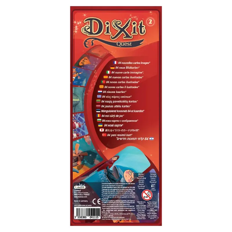 ¡Una imagen vale más que mil palabras! Conviértete en narrador y trata de explicar una de tus cartas… ¡pon a prueba tu capacidad de expresión! Si buscas nuevas historias, ésta expansión de 84 cartas es perfecta para ampliar tu Dixit.