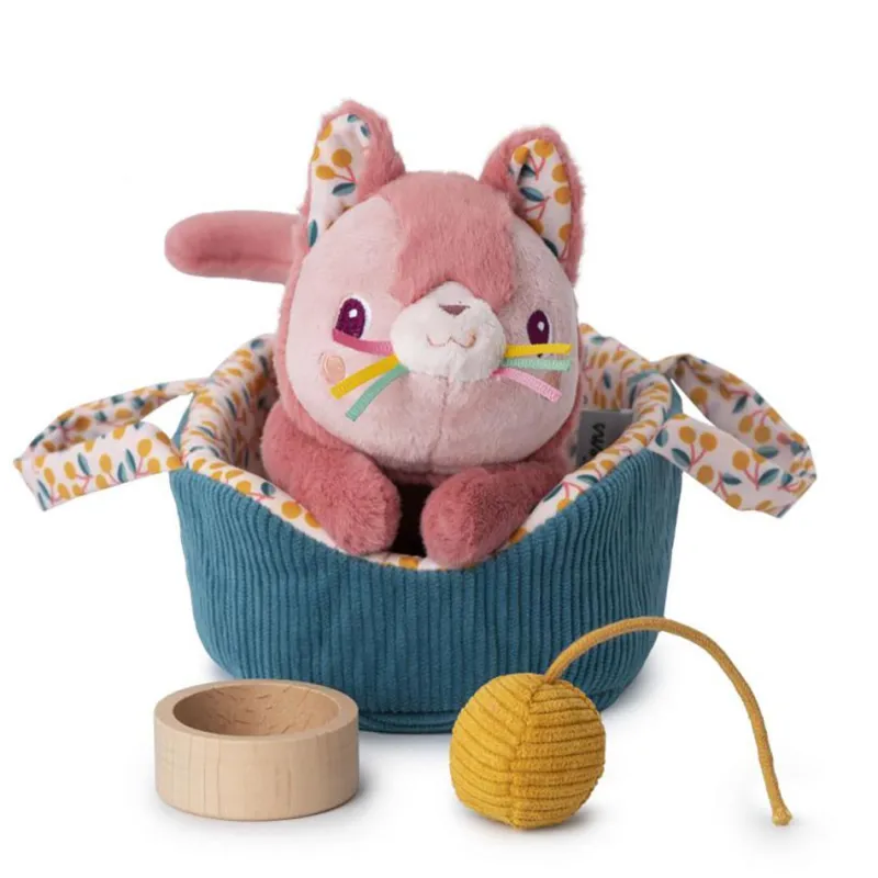 La pequeña gatita Jeanne necesita una siesta en su camita para reponer fuerzas antes de volver a jugar con su ovillo de lana, ¡seréis mejores amigos!