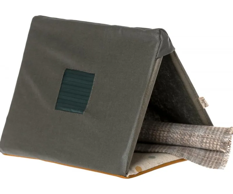 Esta fascinante tienda plegable de Maileg está fabricada en algodón y lino con la tela exterior recubierta para mayor realismo, e incluye una pequeña manta para que tus ratones se mantengan bien calentitos toda la noche.
