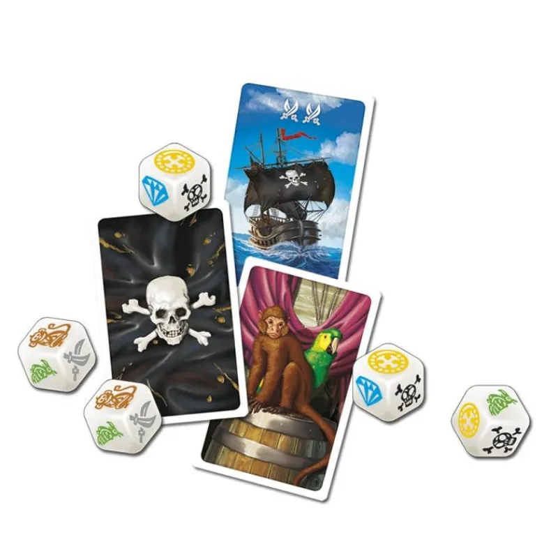 ¿Cuál de todos los integrantes de este navío logrará hacerse con el mayor botín? Podrás conseguirlo si te atreves a lanzar los dados el mayor número de veces sin fallar y consigues las cartas adecuadas. Una maravillosa combinación de suerte, estrategia y riesgo.