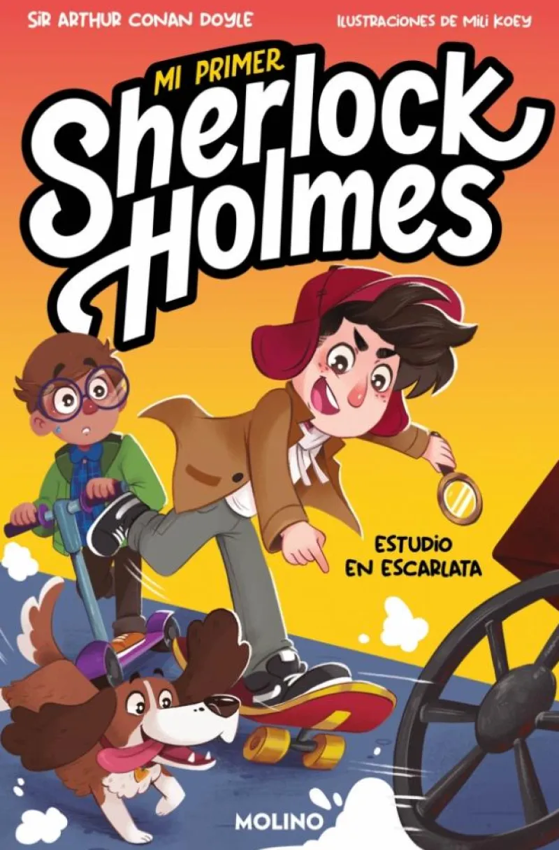 ¿Todavía no conoces a los detectives más famosos de todos los tiempos? Mi nombre es JOHN WATSON, acabo de mudarme con mi familia a Londres, y esta es la historia de cómo conocí a mi mejor amigo, el increíble detective SHERLOCK HOLMES. Juntos resolvemos los casos más peliagudos y misteriosos de todo Baker Street junto a TOBY, nuestro fiel compañero y el sabueso más inteligente y veloz del mundo. Notas del caso ESTUDIO EN ESCARLATA: Una pintada en la casa de los Drebber. ¡Un anillo misterioso (sin dueño)! ¿Quién es el responsable? ¡Bienvenido a la agencia de detectives de Sherlock y Watson! En esta serie encontrarás: * Uno de los clásicos más conocidos y queridos, ahora en una edición adaptada perfecta para que puedas empezar a leer solo. * Con muchísimas ilustraciones, de la mano de la talentosa Mili Koey. * Un divertidísimo cómic protagonizado por Toby con letra mayúscula al final de cada capítulo. * Una combinación ideal de aventuras, misterio y personajes entrañables.