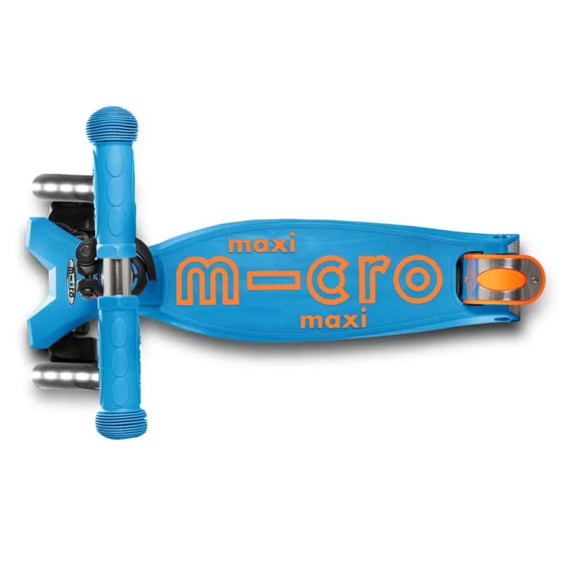 Disfruta de tus paseos en patinete con este increíble modelo Maxi Micro Deluxe en color azul, con manillar extensible… ¡y con luces LED en las ruedas!