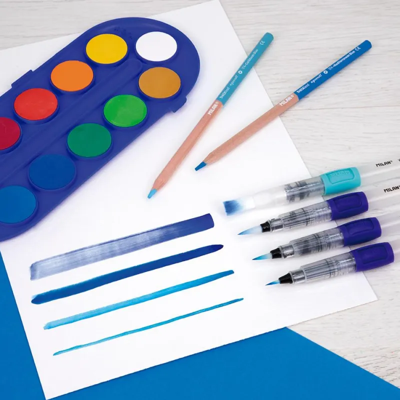 Las características de este pincel recargable lo hacen ideal para difuminar, aclarar, suavizar y extender los colores con agua: acuarelas, lápices de acuarela, pigmentos en polvo, ceras, etc.