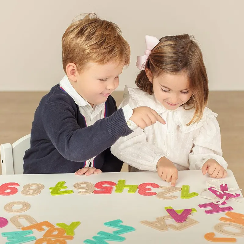 Un conjunto perfecto para que niños y niñas ejerciten la psicomotricidad fina, a la vez que refuerzan el conocimiento de las letras, los números y sus trazos. Es perfecto para compartir entre varios niños y niñas, pues incluye 10 cordones y una guía explicativa. Este conjunto está fabricado con materiales sostenibles, como fibras de origen vegetal, aportando un acabado de gran calidad.