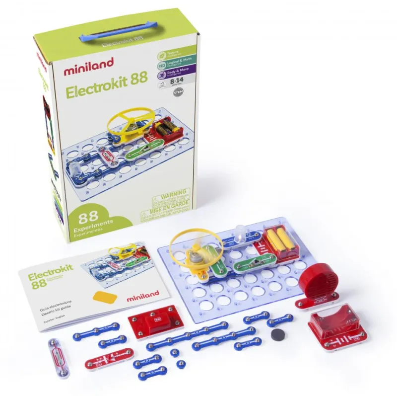 La comprensión de la electrónica es una parte vital de la educación científica de un niño. Los componentes, de fácil manejo, se unen de manera sencilla para crear distintos circuitos sobre la tabla base.
