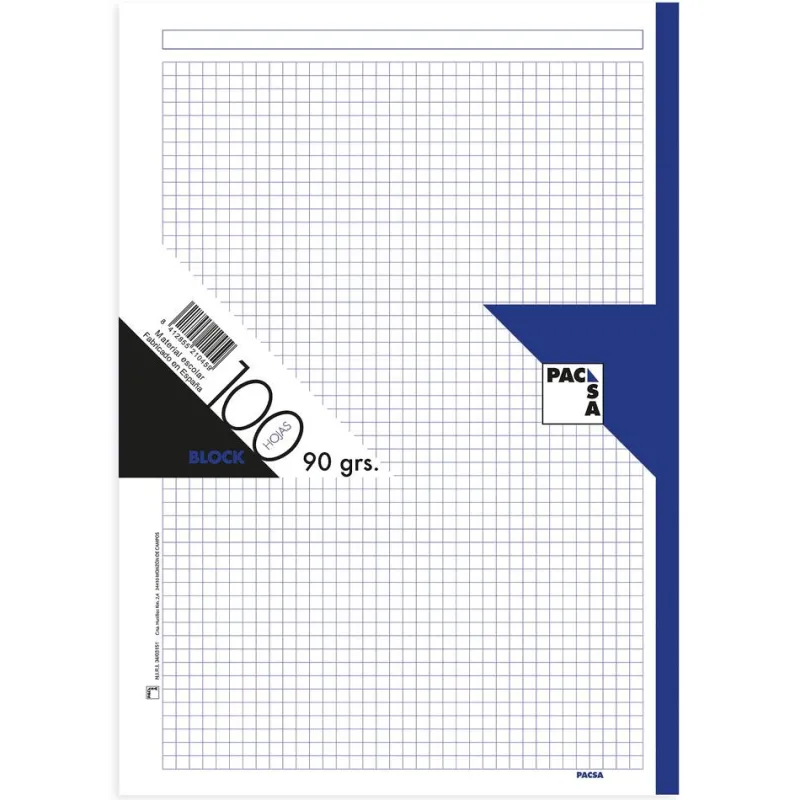 El paquete incluye un total de 100 hojas de recambio con margen, cuatro taladros, cuadrícula de 4×4 milímetros y borde color azul.