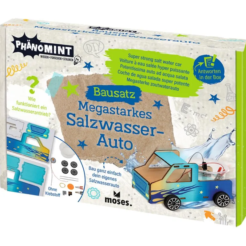Sin pegamento ni piezas complejas de ensamblar, este set se transforma en un coche eléctrico que funciona con agua salada, ¿conocías este tipo de transformación de energía? Experimenta con este coche y descubre cómo funciona la energía cinética, ¡mientras dejas a todos boquiabiertos con el coche del futuro!