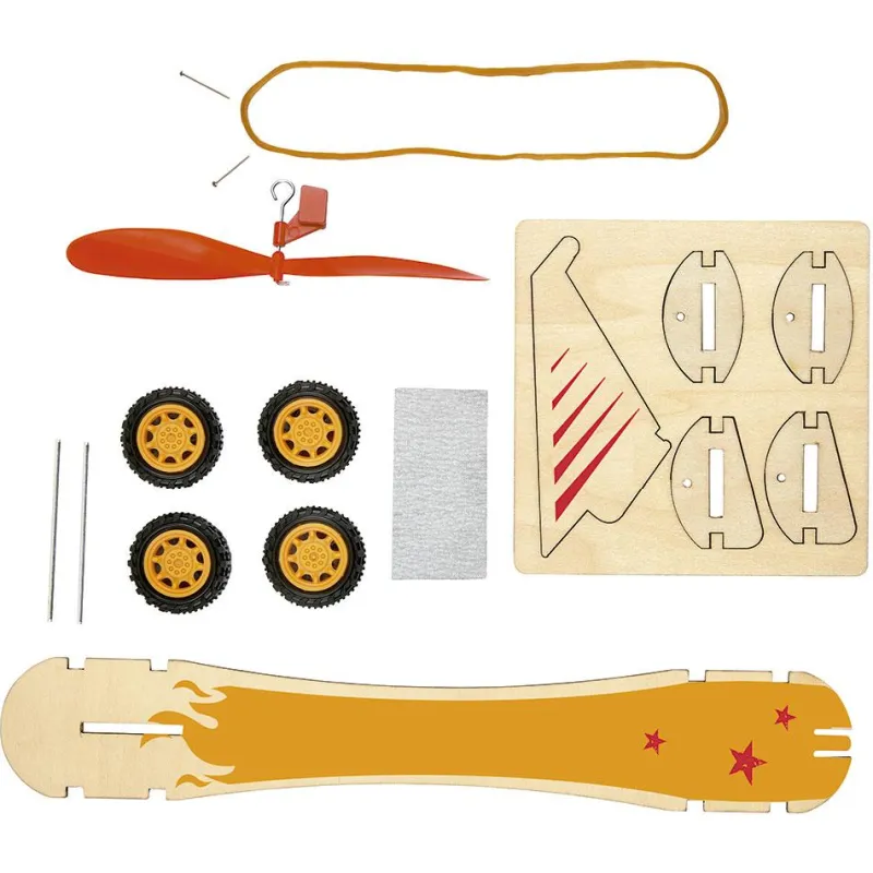 Construye un alucinante bólido de madera que se propulsa por medio de una goma elástica, ¡y observa la velocidad que alcanza!