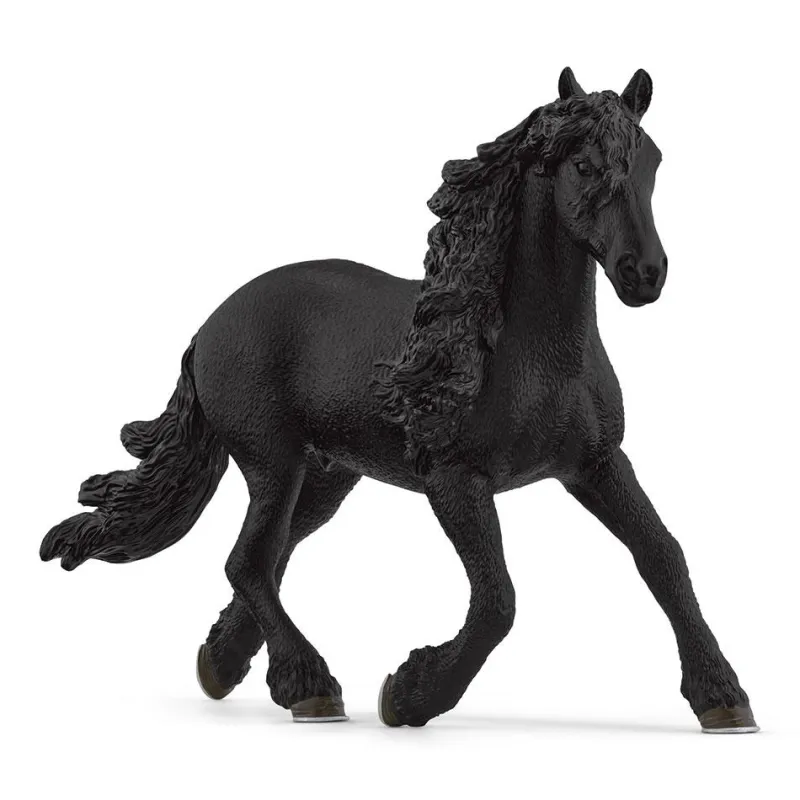 La raza frisona es una de las razas de caballos más antiguas de Europa. Al nacer, los potros son siempre castaños, y su pelaje se va volviendo negro a lo largo de los años. Tienen unas crines sedosas y abundantes, y una cola bonita y larga. Debido a su aspecto extraordinariamente elegante, son muy apreciados como caballos de doma.