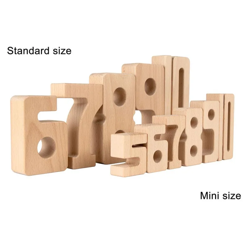 Cada bloque de madera tiene la forma de un número y su tamaño es proporcional entre las distintas cifras, de manera que si construimos dos torres y son igual de altas, también tendrán el mismo valor numérico, ¡increíblemente práctico!