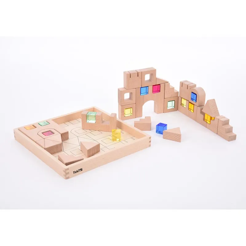 Estos geniales bloques de madera y cubos de colores translúcidos serán la inspiración que necesitas en tus juegos de construcción, ¡deja que tu imaginación te guíe!