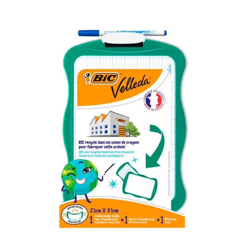 Llena con tus anotaciones y dibujos esta cómoda pizarra borrable. Gracias a su práctico tamaño ¡podrás llevarla contigo a todas partes!